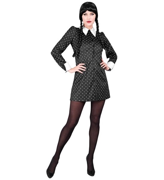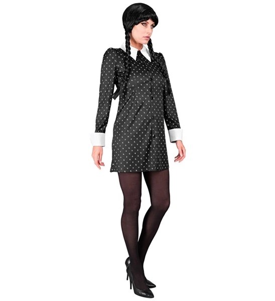 Daca filmul tau preferat de Halloween este Familia Addams, atunci ti-ai gasit deghizarea pentru petrecerea de pe 31 octombrie. O deghizare care te va face sa arati exact ca Wednesday, fiica familiei Adams. Mica si ciudata, cam asa o vedea toata familia, ea era mai mereu inchisa in casa. Si fiindca tu poti face orice vrei, nu vei ramane acasa in aceasta noapte sinistra, ci vei merge la petrecere cu prietenii tai pentru a iti gasi familia Adams pierduta in multimea de la premiile Oscar. Good luck!