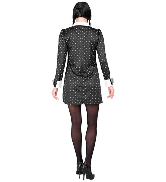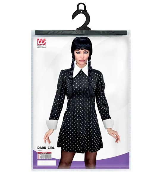 Costumul Dark Girl Adult include rochia cu guler si maneci albe, alaturi de nasturi aplicati. O deghizare care te va face un star de cinema!