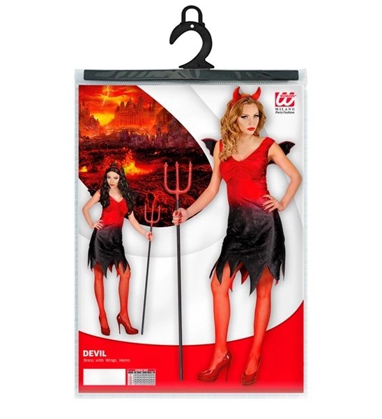 Costumul Diavolita Adult include rochia, bentita cu cornite si aripi. O deghizare perfecta pentru petrecerea de Halloween!