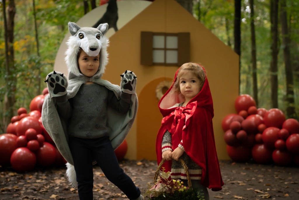 Costum Lup Poveste Pelerina include pelerina cu gluga cap de lup, coada aplicata si manusi atasate. Costumul de lup este disponibil pentru 4-6 ani (110-120 cm inaltime). Costumatia este realizata cu o mare atentie la detalii, avand o calitate superioara. Design realizat in Canada.