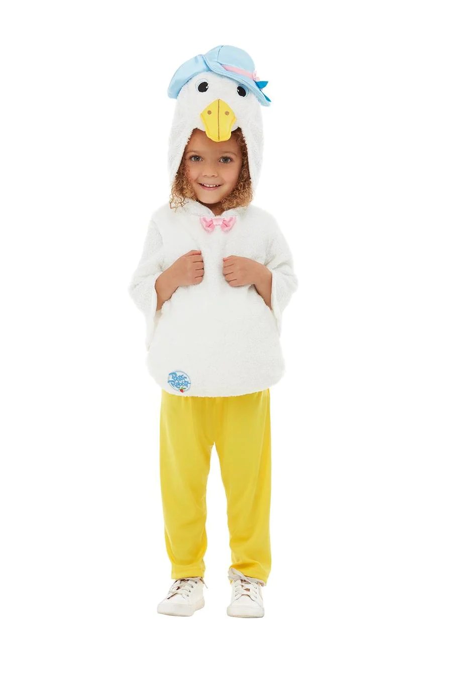 Costum Rata Jemima Peter Rabbit include bluza cu gluga si pantalonii galbeni. Costumul a fost inspirat din filmul Peter Rabbit.