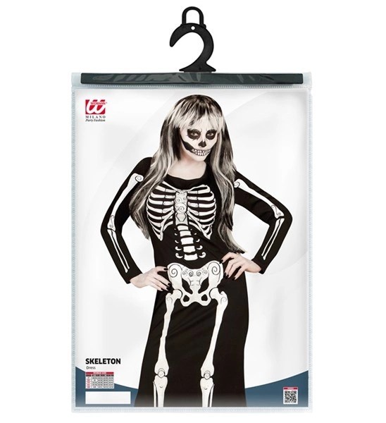 Costum Schelet Elegant Dama include rochia neagra lunga cu imprimeu schelet pe partea din fata. O deghizare perfecta pentru petrecerea de Halloween! Let’s start the party!