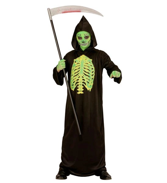 Costumul Schelet Toxic Copii include roba cu imprimeu pe partea din fata si gluga aplicata. Aceasta deghizare este disponibila pentru baietii cu varsta cuprinsa intre: 4-5 ani (116 cm inaltime), 5-7 ani (128 cm inaltime), 8-10 ani (140 cm inaltime), 11-13 ani (158 cm inaltime) si 14-16 ani (164 cm inaltime). Manechinul din imagine este pictat pe fata.