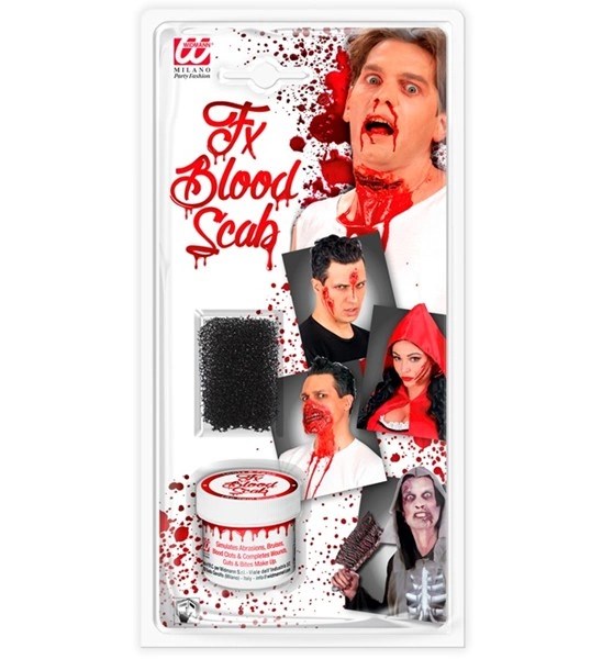Setul Sange Scrab contine o cutie de 28,4 g sange fals si un buretel aplicator. Acest produs se foloseste pentru a evidentia cat mai real ranile false sau alte detalii ale machiajului.